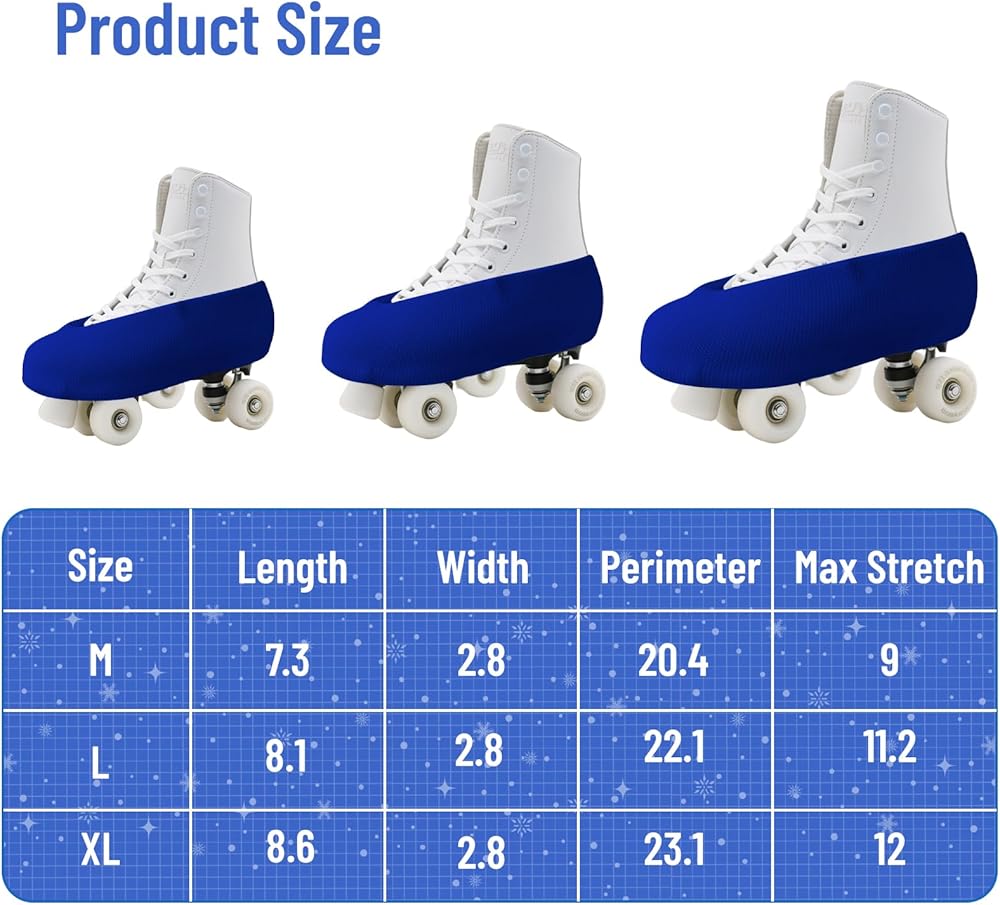 Variety Of Sizes: Our ice skates covers are available in three sizes, size M fits shoes size 3-4.5, size L fits shoes size 5-6.5, size XL fits shoes greater than 7, skate boot covers are elastic and can be adjusted appropriately