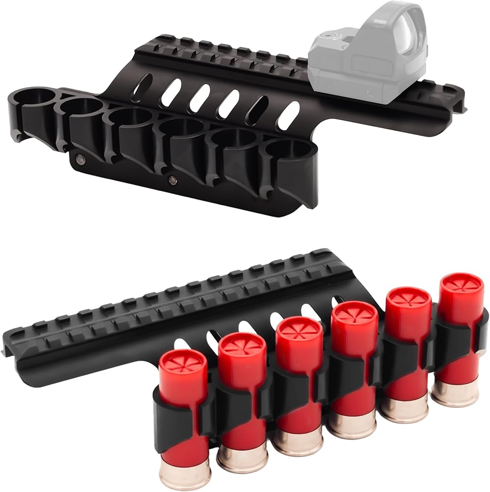 Gotical Side Saddle Shotgun Shell Holder W/Picatinny Rail Mount 6 Capacity Shot Shell Holder for 12 Gauge on Any Size Receiver Compatible with Remington 870