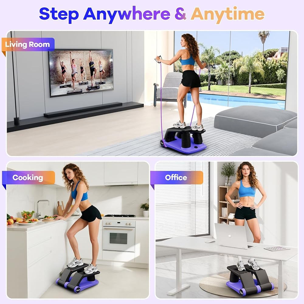 Full-Body Cardio Workout: Say goodbye to boring workouts and hello to total-body transformation! Our advanced stepper machine combines dynamic stepping movements with integrated resistance bands to deliver a powerful calorie-torching session that simultaneously sculpts your legs, arms, and core. Watch your progress come to life on the clear LCD display - tracking every second, step, and calorie burned to keep you motivated and on track toward your fitness goals