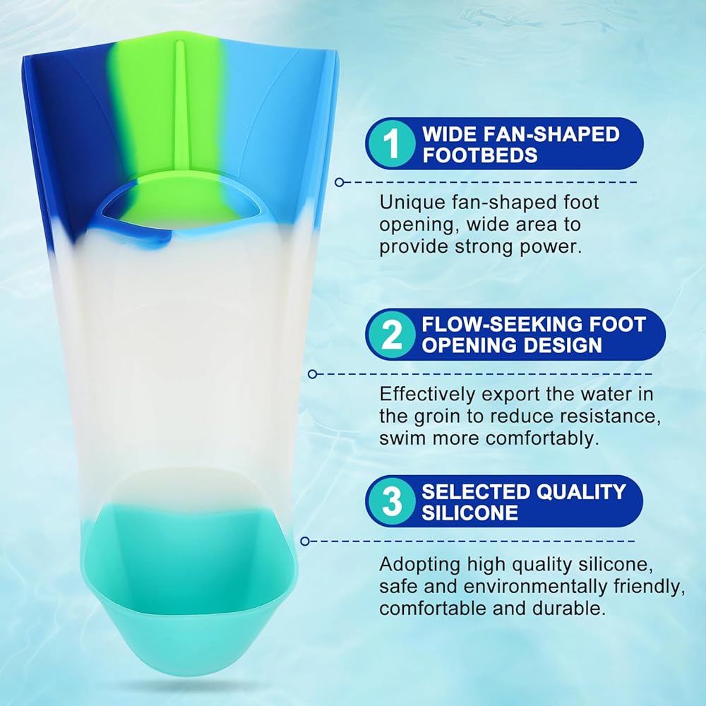 Unique Design for Comfort: The silicone fins are designed to fit comfortably with a unique shape, using elastic soft silicone to provide strong and powerful kicks, delivering a superior wearing experience.