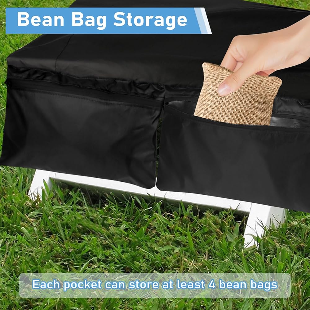 BEAN BAG STORAGE: Each cover has two large pockets on the end, ideal for storing 8 full size bean bags and other cornhole accessories. Sealed with waterproof zippers to prevent rainwater from entering