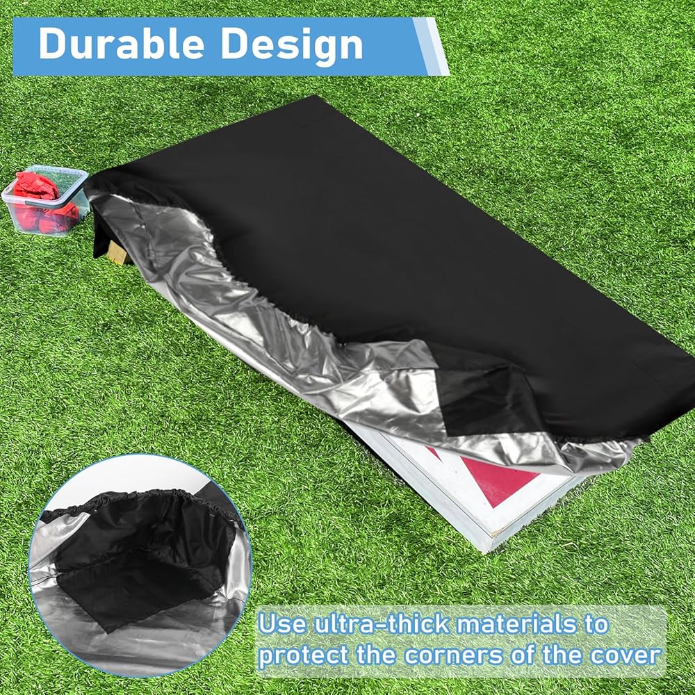 CONVENIENT AND RELIABLE: This cover protects your cornhole board from dust, rain, UV rays, bird droppings and prolongs its life. Tighten the drawstring to withstand strong winds. You can safely store your cornhole board outdoors