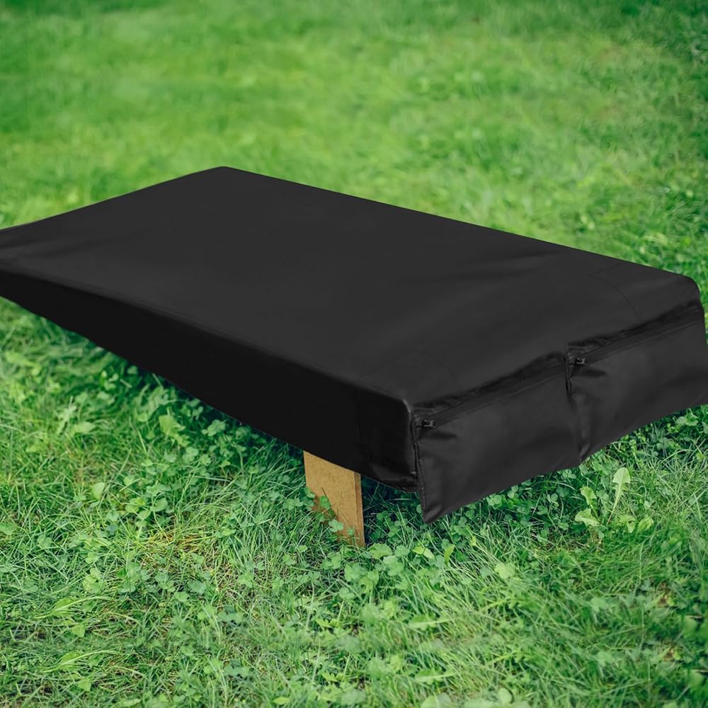 DURABLE DESIGN: The waterproof cornhole covers are made of heavy-duty oxford fabric with high-density stitching for added durability, which is anti-fade and tear-resistant. Thickened material provides enhanced protection for the corners of the board from any potential wear or breakage