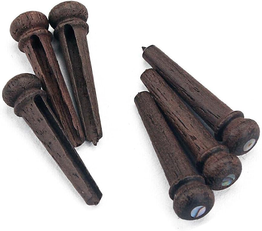 6 PCS Rosewood Guitar Bridge Nails String Pins with Green Pearl Shell Dot Accessory