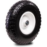 Widely Used: 4.00-6 air less tire and wheel Diameter of Wheel: 13'', Iron hub dia.: 6.73'', Width: 3.4'' , Bearings: 5/8", and 2.17'' Offset Hub Length. Load Capacity: 400 lbs/wheel. Suitable for wheelbarrow, hand truck, trolley, boat dolly, garden utility wagon, garden scooter, hose reel cart,etc.