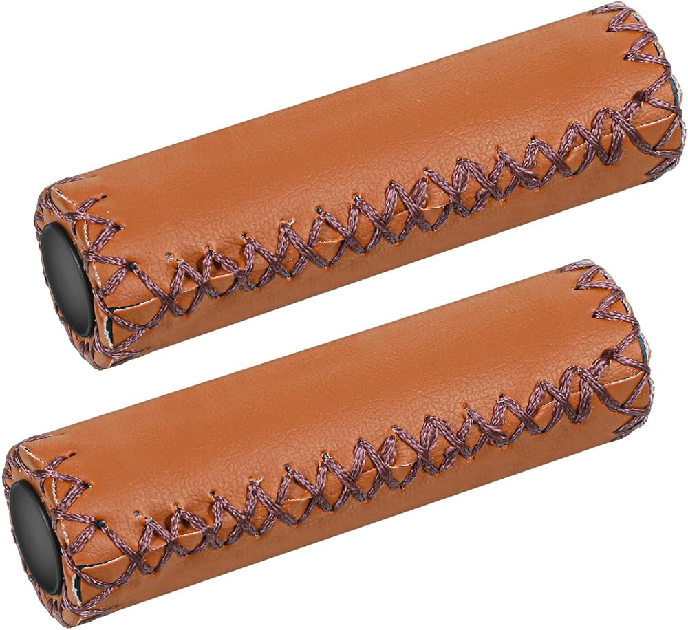 2pcs Bike Handle Grips, Hand-Stitched Bicycle Grips for Handlebars, Brown PU Leather Bicycles Handlebar Grip, Fits Most 22.2mm (7/8") Bicycle Handlebars