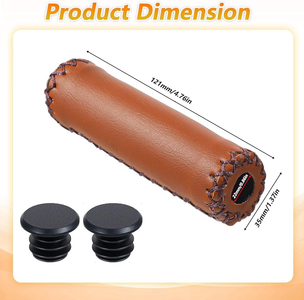Stylish & Durable: The brown PU leather finish of these bike grips handlebar adds a touch of elegance to your bike. Lightweight yet robust, these bike hand grips are built to last, enhancing both style and functionality