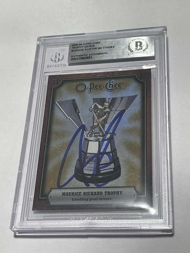 Auston Matthews Signed Maurice Richard Trophy Card IP Slabbed Beckett BAS a . If a product is unsigned or non game-used, a hologram will not be included. Auston Matthews memorabilia. Toronto Maple Leafs memorabilia.