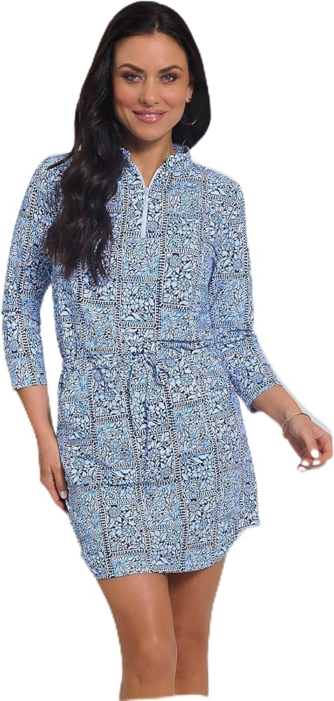 Fresh, flattering, and full of charm, the Josie Drawstring Dress brings classic botanical style to a versatile silhouette. With a zip placket, drawstring waist, and ¾ sleeves, this dress is both elegant and easygoing. Light, breathable, and soft, it's powered by Iceƒil cooling technology, UPF 50+ protection, and moisture-wicking comfort.