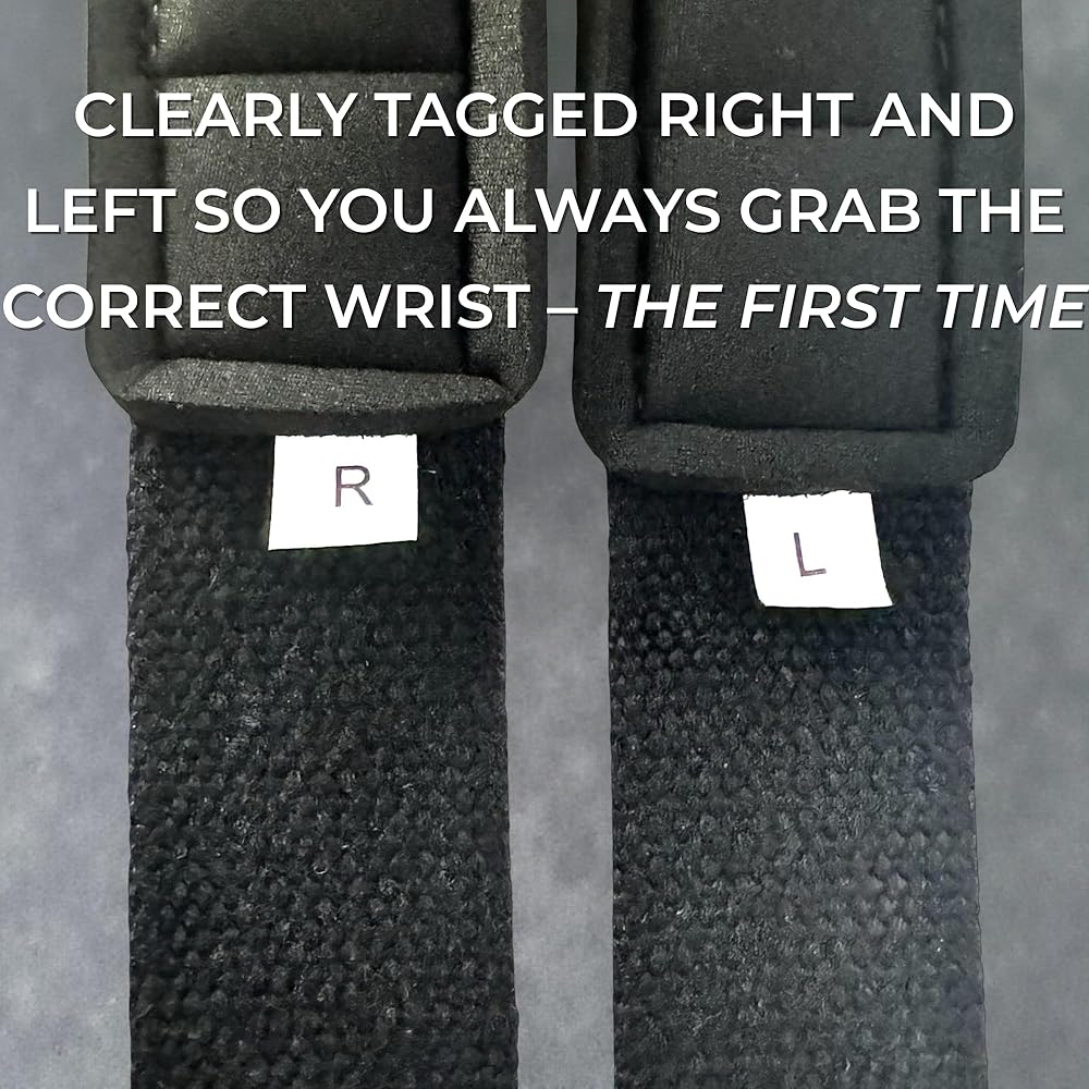 OPTIMISED DESIGN: Our gym deadlift straps are 22 inches long, offering 2-3 secure wraps around standard barbells. Clear LEFT/RIGHT labels ensure quick, easy setup of your pull straps gym gear for a perfect, adjustable fit.