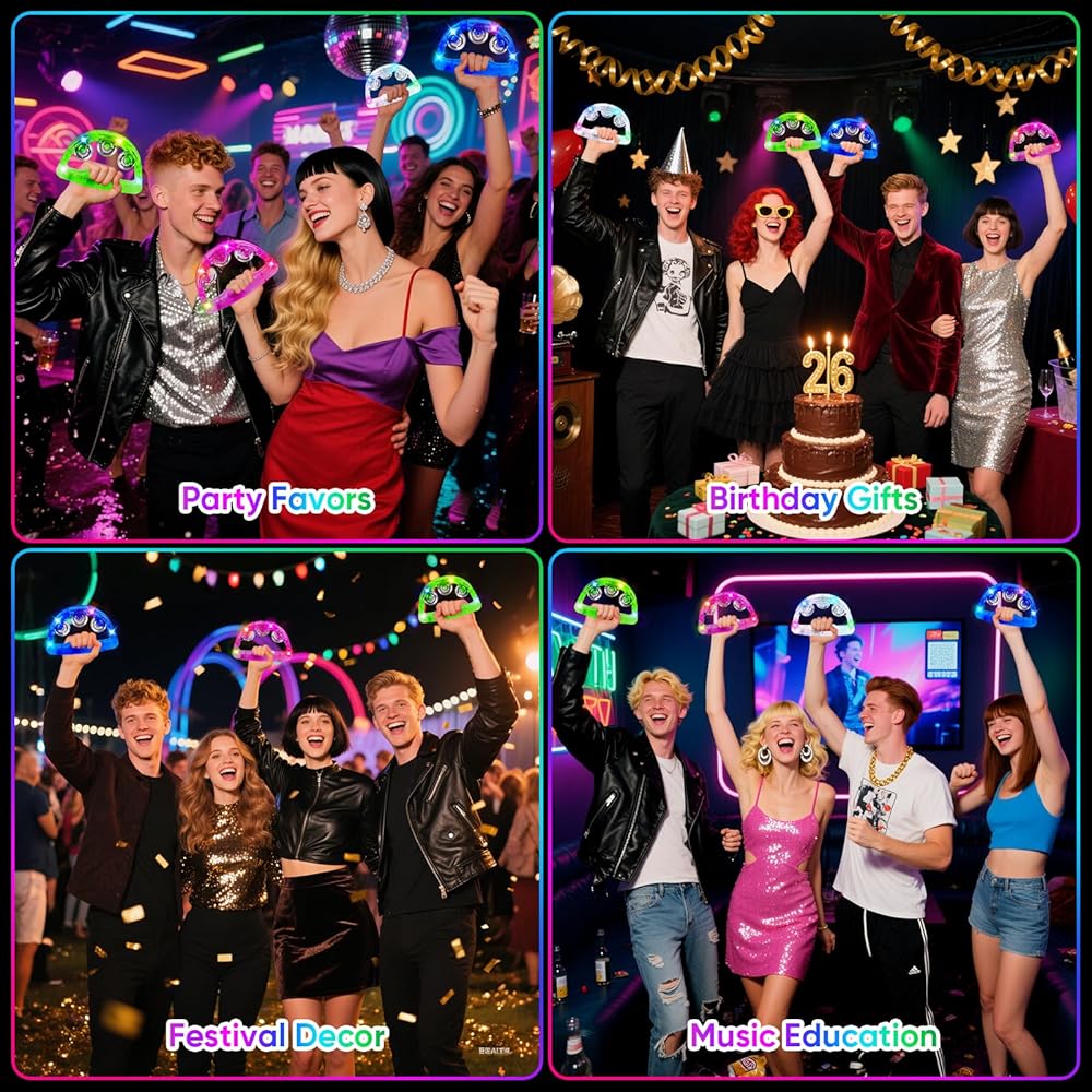 Ideal Glowing Party Supplies: Anyone can play this glow in the dark led tambourine, the musical flashing tambourines are suitable for concerts, birthday parties, neon theme festivals, Halloween, Christmas, bars, beach parties and more, the percussion musical instrument light up tambourines will instantly add energy to your party