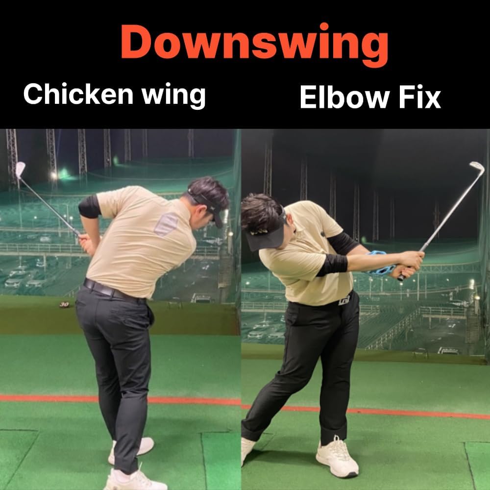 Master Your Swing with ElbowFix – The Trusted Tool for All Golfers ElbowFix is the essential training aid for golfers who want to fix the “chicken wing” and develop a smoother, more connected swing. Made from highly elastic material, it allows your arms to rotate naturally after impact — a key to building consistent, powerful shots. While other tools use rigid, hard materials that restrict movement, ElbowFix is designed for comfort and real-world swing mechanics. It's secured with wrist bands, so you can practice on your own anytime without assistance. From full swings to putting and chipping, ElbowFix helps correct a wide range of swing issues — including out-to-in paths and flying elbows — making it the most versatile training tool in your bag. Trusted by instructors and used in countless lessons, ElbowFix is the top-selling product from Sangsang Golf, a Korean golf brand founded by a professional golfer. Whether you're a beginner or an advanced player, ElbowFix will elevate your training and help you play your best.