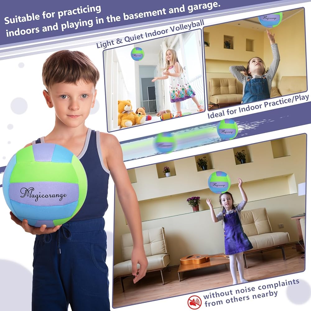 【Quiet Indoor Play, No Disturbance】This quiet volleyball is engineered for silent fun—unlike traditional hard volleyballs that create loud thuds when hitting floors, walls, or furniture, it produces minimal noise during play. Whether your kids are practicing serves in the living room or you're having a casual game after work, you can enjoy volleyball indoors without worrying about disturbing family members, neighbors, or disrupting a quiet home environment.