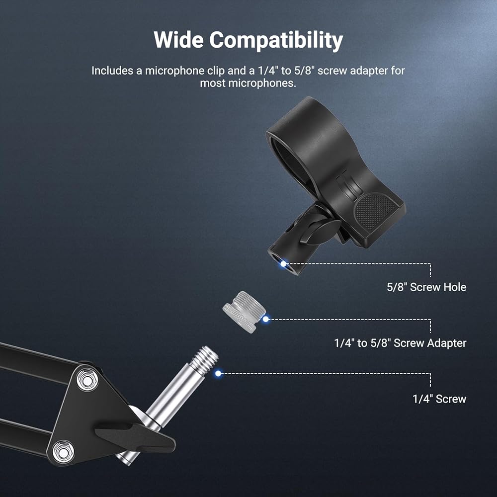 【Universal Phone Holder】 The 2.6" to 3.7" (65 to 95mm) adjustable mic stand cellphone clamp holder is compatible with iPhone 16 15 Pro Max Plus 16e i Phone 14 13 12 android Samsung Galaxy S25 S24 S23 Ultra Google Pixel 9 8 7 Pro Huawei and other smartphones for vertical and horizontal shooting. The nonslip pads protect your phone from scratches. Ideal as content creator essential mobile phone camera photography accessories and influencer must have video filming gear