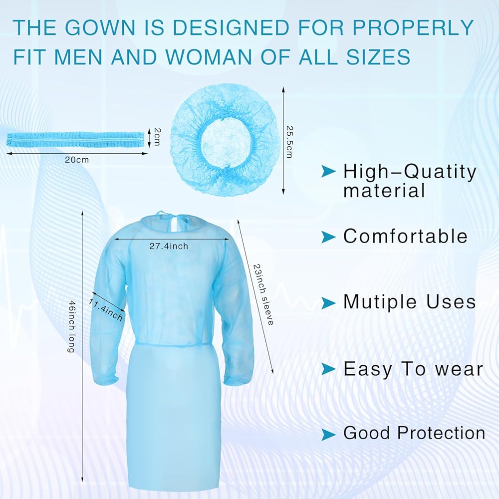 These bouffant caps disposable and gowns are lightweight and practical, with elastic bands, you will not feel uncomfortable for wearing a long time.