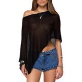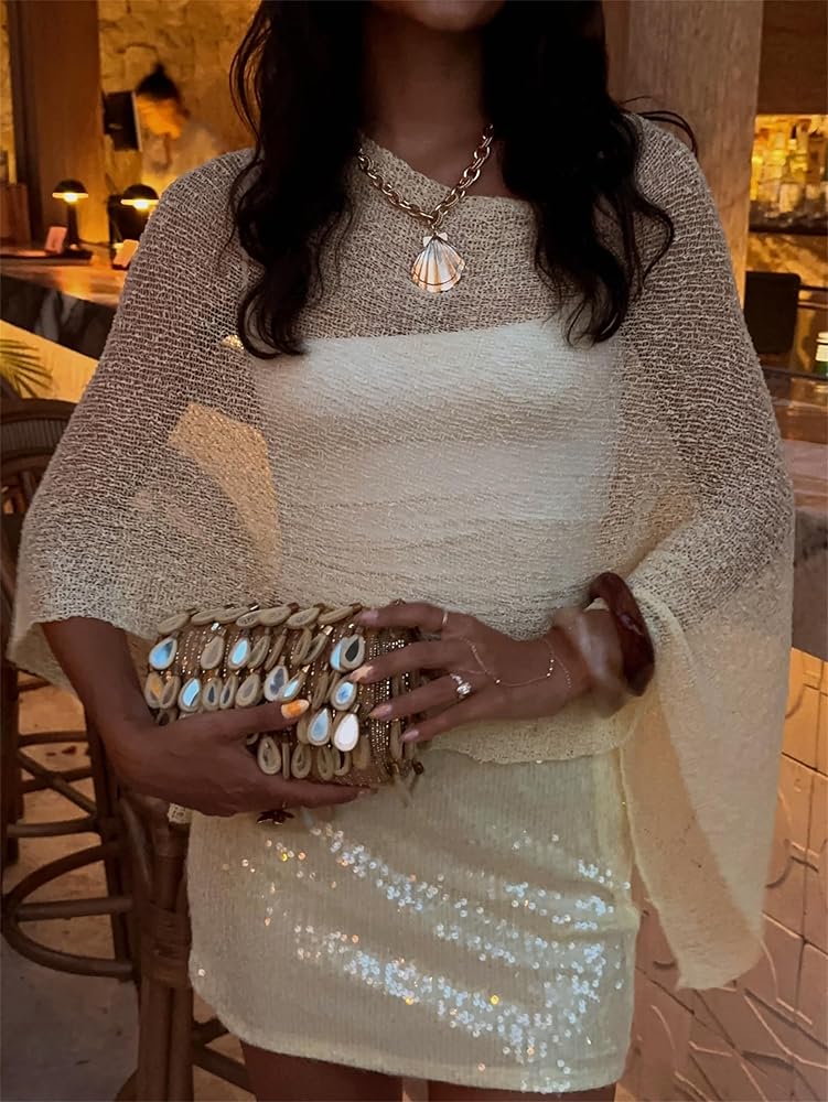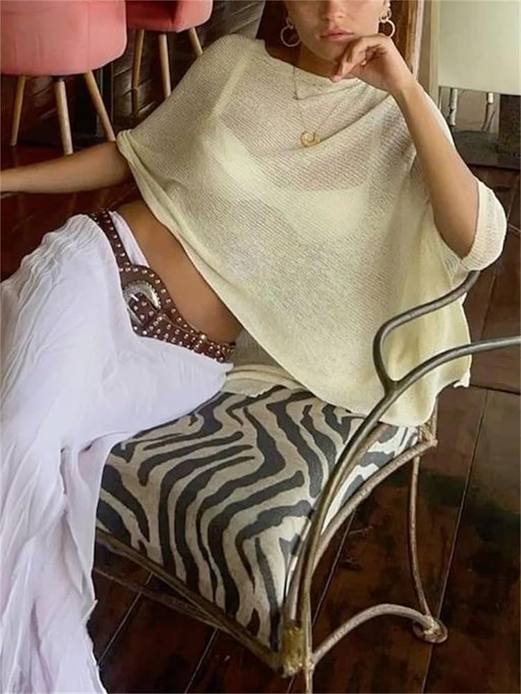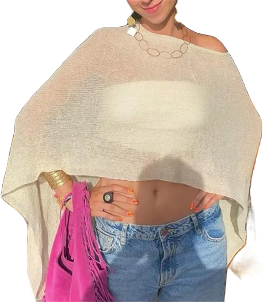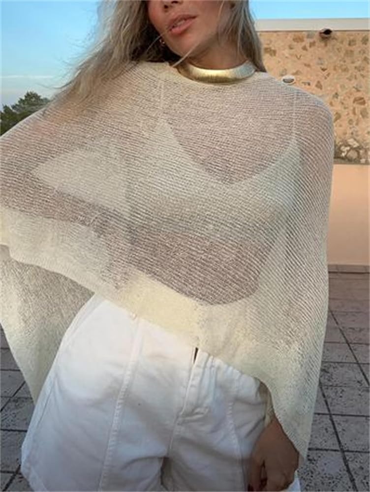Step into the world of Y2K fashion with our Women's Sheer Knit Poncho Shrug!