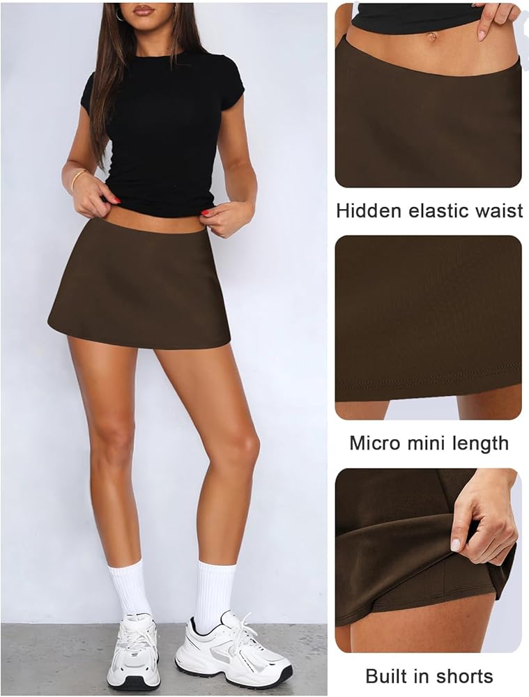 【Features】Women mini skirt features a relaxed fit on the legs, a hidden elastic waistband,a low rise design, built in shorts,an A line fit and mini skirt length. It combines the fashionable look with the practicality of shorts and easily transitions from activewear to casual wear.