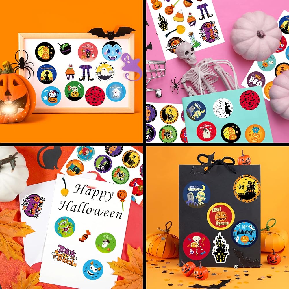 HALLOWEEN STICKERS FOR USING: Halloween sticker sheets suitable for Halloween party DIY decoration, Halloween candy bag, DIY cake decoration, Halloween gift box and all other Halloween related purposes. Used to seal boxes, cookie bags and gift decorations,Trick-or-Treat decorating, and more ways to use look forward to your exploration.
