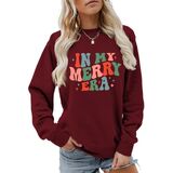 FEATURES: "In My Merry Era" Christmas letter print long sleeve round neck o neck crew neck crewneck sweatshirt fall autumn winter graphic t shirt casual tees tops sweatshirts for women, Christmas holiday vocation birthday Christmas gift pullovers tops hoodies blouses, long sleeve, loose fit, solid design, soft high-quality cotton materials, casual chic basic style, ideal gift for your friends mom wife mother sisters family daughter yourself.