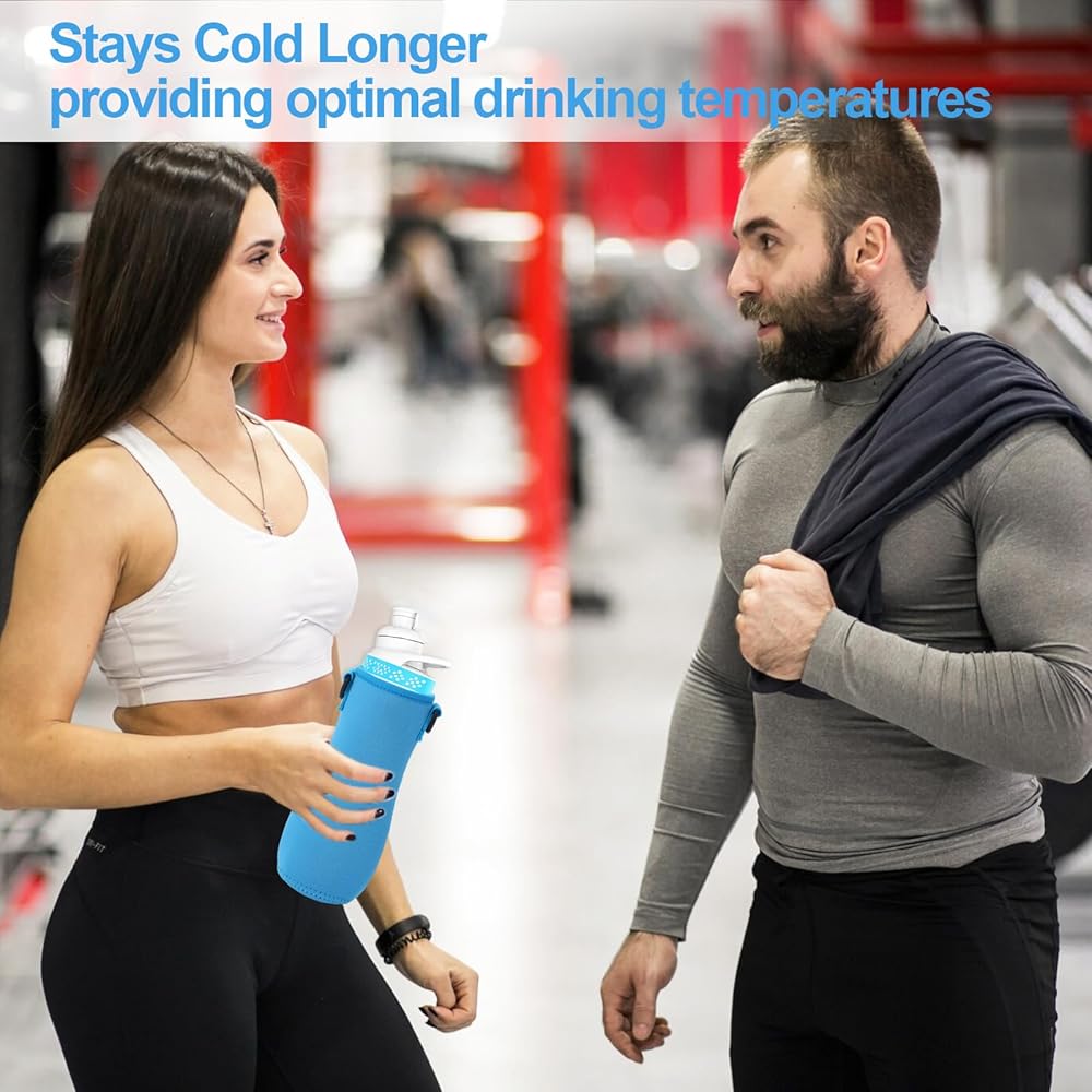 The bottle sleeve is made of high-quality lightweight neoprene, which can insulate your drink and also prevent condensation. This insulated sleeve can keep the surface dry and keep your water bottle looking clean and fresh