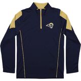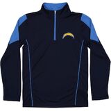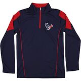 This performance 1/4 zip long sleeve pullover is perfect for a young football fan. Your young one will enjoy wearing this pullover with its lightweight and performance material, team logo on the front and the team name on the back. Youth boys (8-20) sizing.