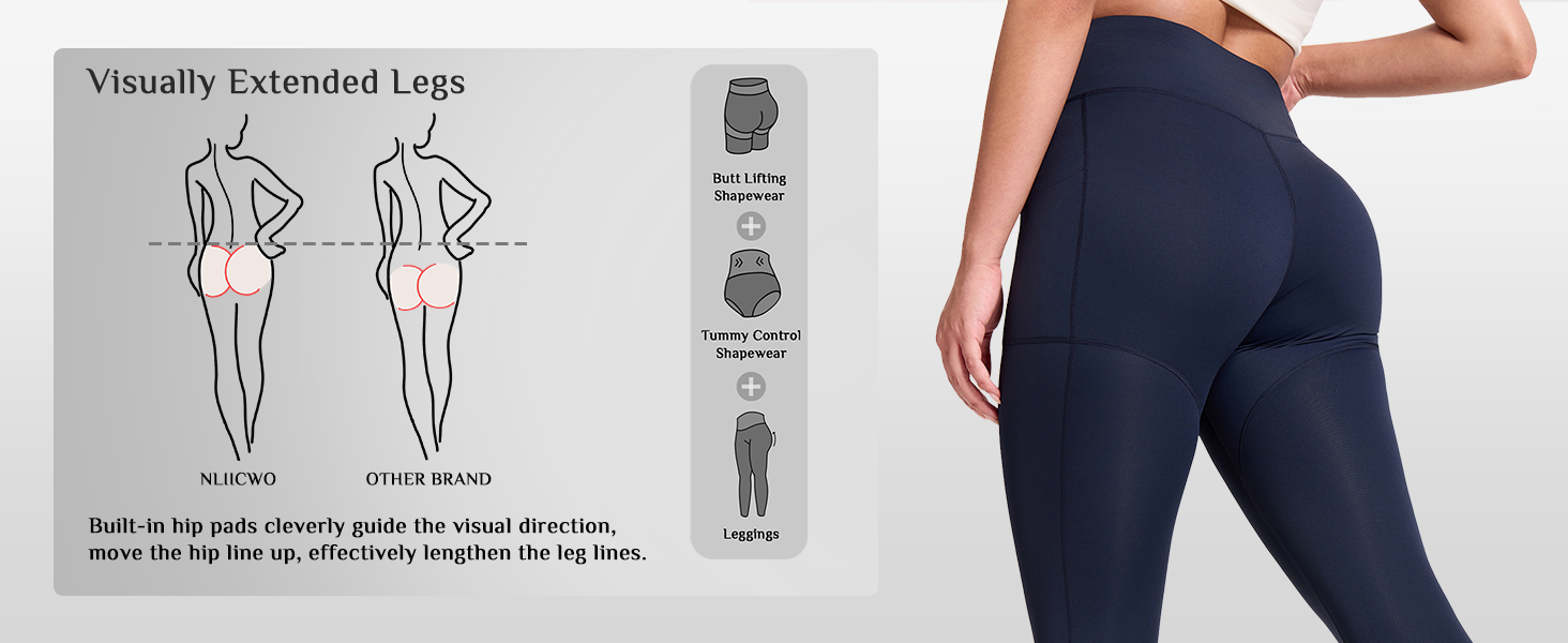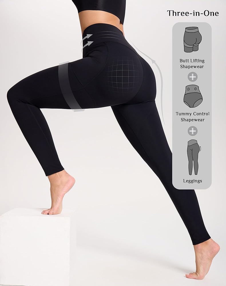 • Versatile 3-in-1 Design:Seamlessly transition from the gym to daily life! These pants combine the support of shapewear tummy control with the style of yoga leggings. This all-in-one design replaces bulky layers, offering the smoothing power of a body shaper and the discreet lift of butt pads for bigger butt in one sleek legging. Ideal for yoga, work, or casual outings
