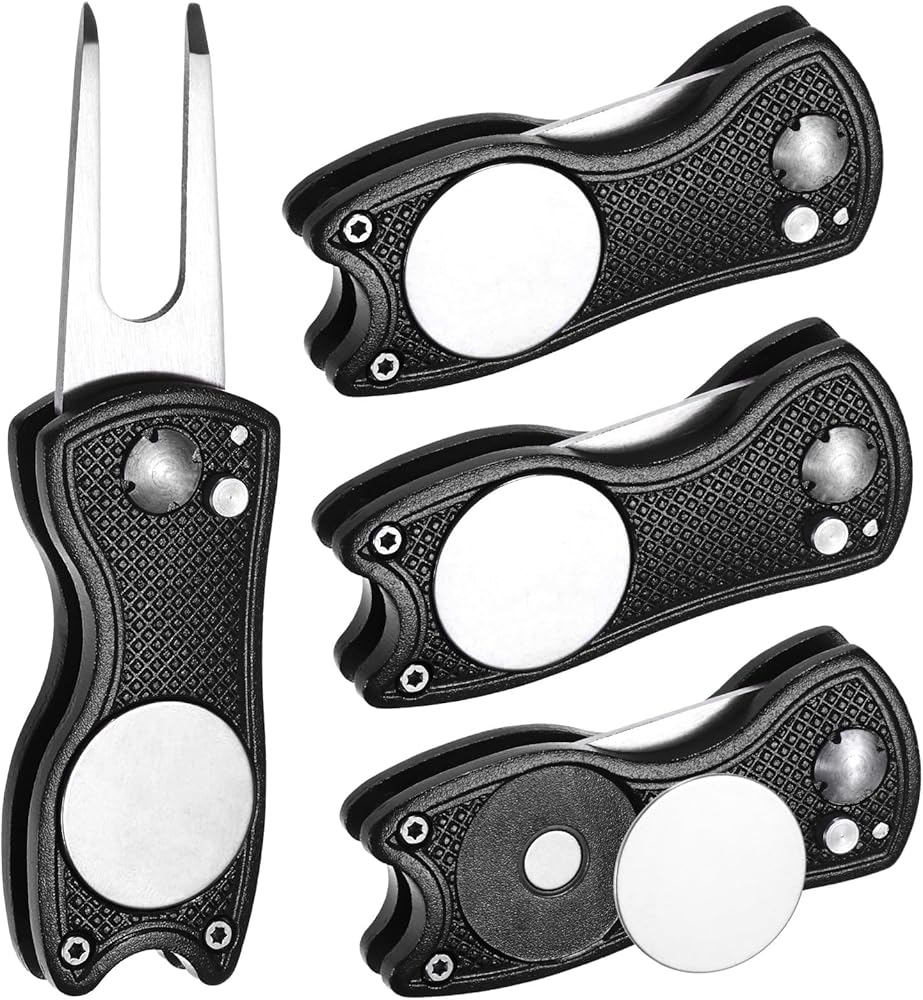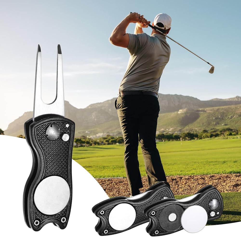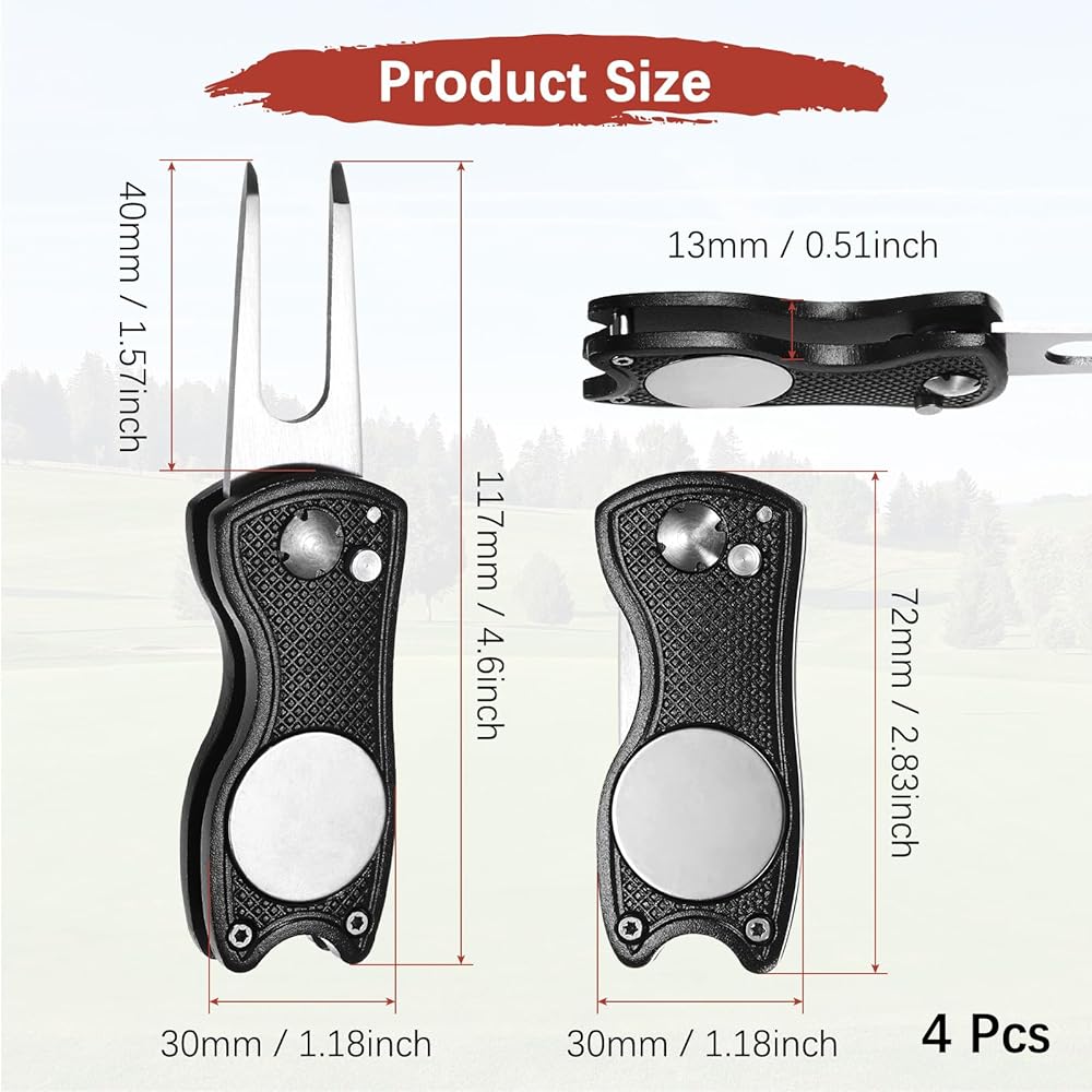 1. The golf divot repair tool has a switch folding design, which can be easily used by pressing the eject button with one hand. The fork teeth can effectively pull up the grass without damaging the roots, making it a practical golf accessory tool.