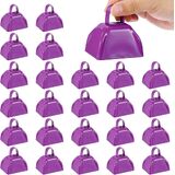 PATIKIL 24pcs Cow Bells for Football Games,3in Cowbells for Sporting Events Bulk Loud Noise Makers Metal Cow Bell with Handle for Cheering Competition Marathon Wedding, Blue Purple