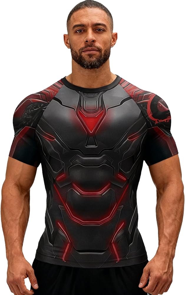 Features: These sports baselayer t-shirts tops have a round neckline, different fashion pattern design from fine digital printing technology, keep the pattern intact, not easy to fade, lightweight, slim fit, brings you simple style along with comfort; athletic compression shirt for men is with 4-way stretch superior quality fabrication, allows greater mobility in any direction during training.
