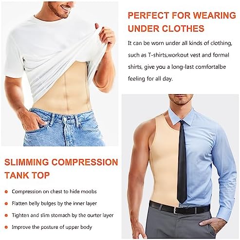 SOFT AND COMFORTABLE MATERIAL:Men tank top body shaper vest made of 90% polyester&10% spandex and right thickness is more comfortable and breathable compared to other normal tank top vest.You can use adjustable hook to tighten the waist and the stretchy fabric will suck the abdomen in,it's a great men's slimming body shaper and compression shapewear for social party,to give you a good apperance of the tummy and chest.