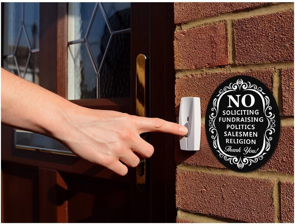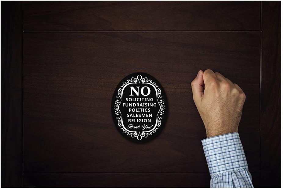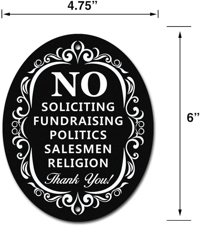Stop Unwanted Visitors: "NO: fundraising, politics, salesmen, religion." It's a straightforward and effective solution for deterring unwelcome visitors from your property.