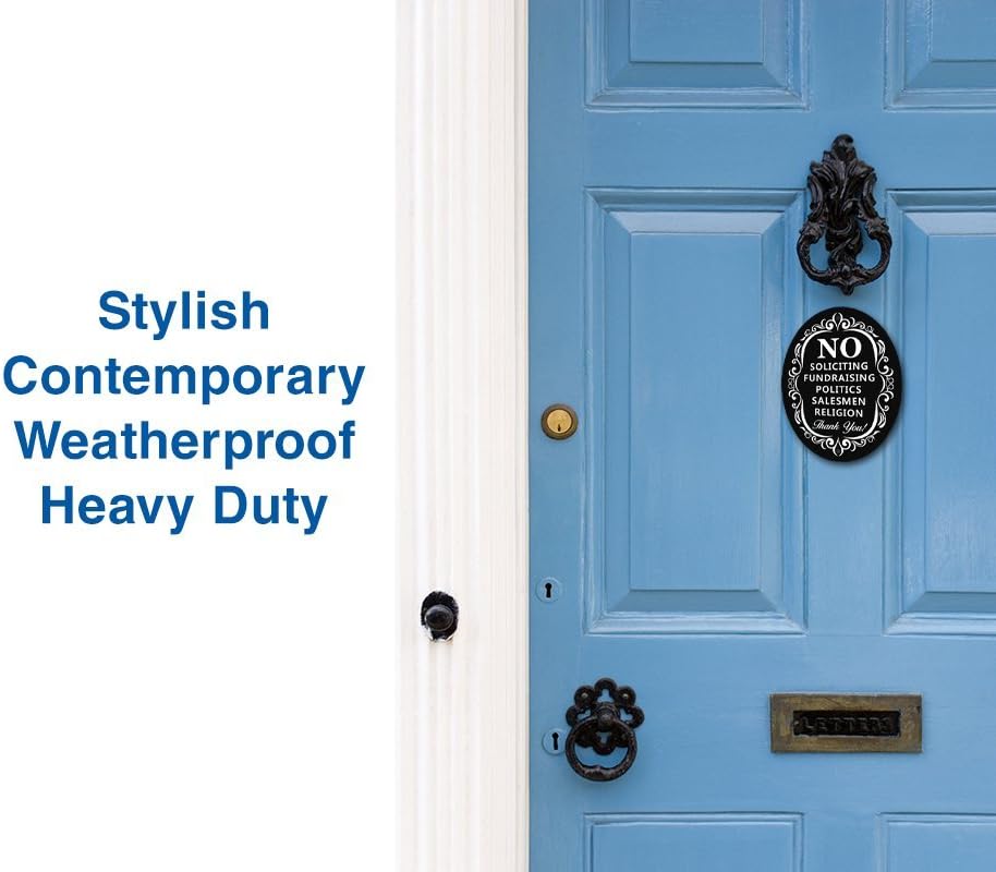 Sturdy and Durable: Crafted with 6"x 4.75" Heavy Duty Dibond Aluminum, this solicitation sign for your home is built to last. Unlike plastic, stickers, or vinyl, it won't fade, rust, or let you down.