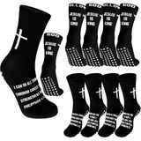 Comfort Materials: experience comfort while sporting our Christian soccer socks; They are made from breathable nylon material, and the bottom of the sock is made of silicone to ensure your feet stay cool and dry even during the most intense matches