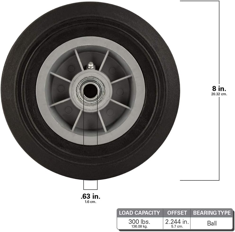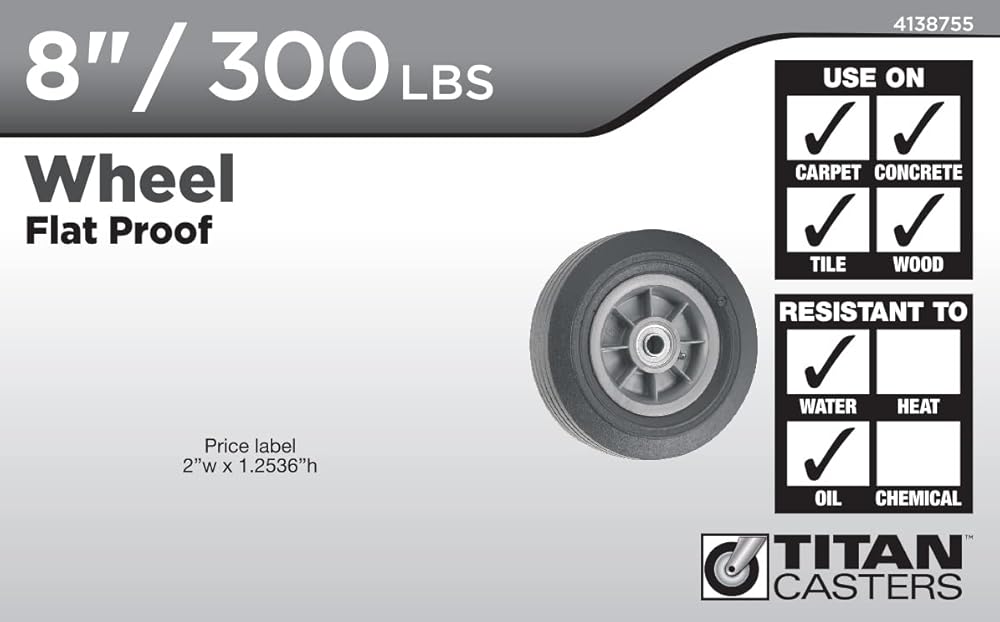 This 10 inch wheel is airless, lightweight and non-marking and perfect for use on a variety of applications up to 300 pounds.