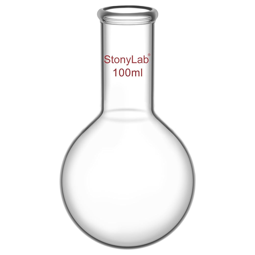 StonyLab Glass 100 ml Long Neck Round Bottom Flask, Borosilicate Glass Heavy Wall Round Bottom Boiling Flask RBF with Long Neck, 100ml