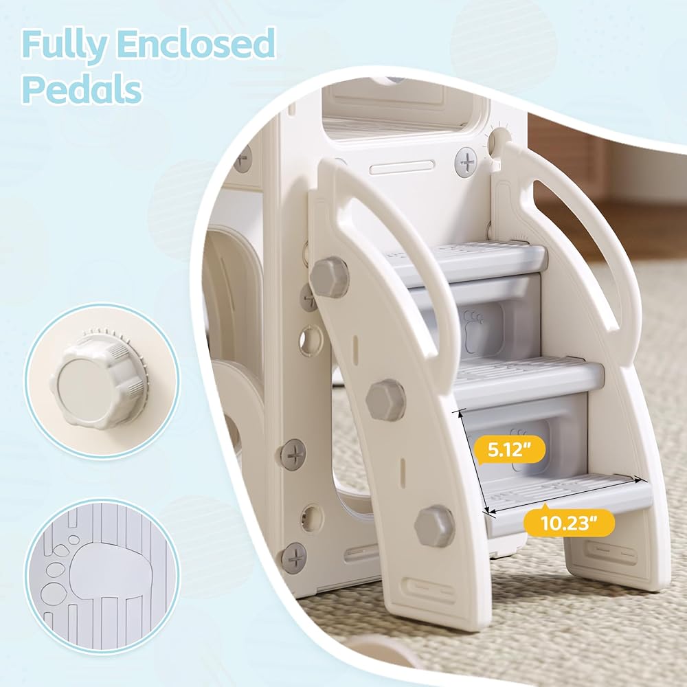 T-Structure and Safe Material: The toddler playground set is an T-shaped structure when viewed from an overhead perspective. It is made of HDPE and has passed CPC certifications, ensuring the safety for your child. Its stair has fully enclosed 10.2"/26cm steps with anti-slip cartoon textures, providing a secure climbing experience.