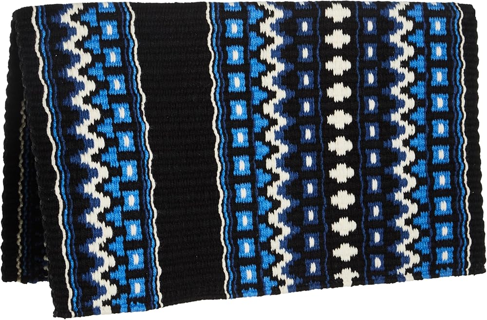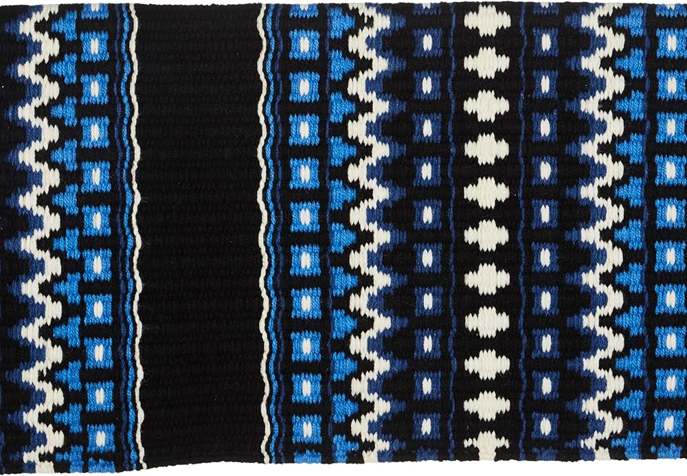 Mayatex Western Saddle BlanketDomino Weave Pattern34" long 40" wideColor Combination = Black, Sage Green, Sand, ChocolateHand Woven New Zealand WoolShop online or please give us a call to schedule an in store pick up!Product Number: 1313DOM-27Mayatex is proud to offer high quality saddle blankets.Vibrant ColorsNavajo Saddle Blanket PatternsAztec Horse Blanket Designs