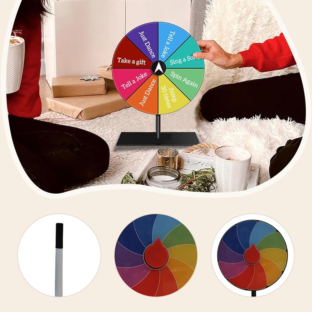 - 【Editable】: The tabletop wheel features rainbow fan shaped divisions that allow writing the awards or prizes according to different playways