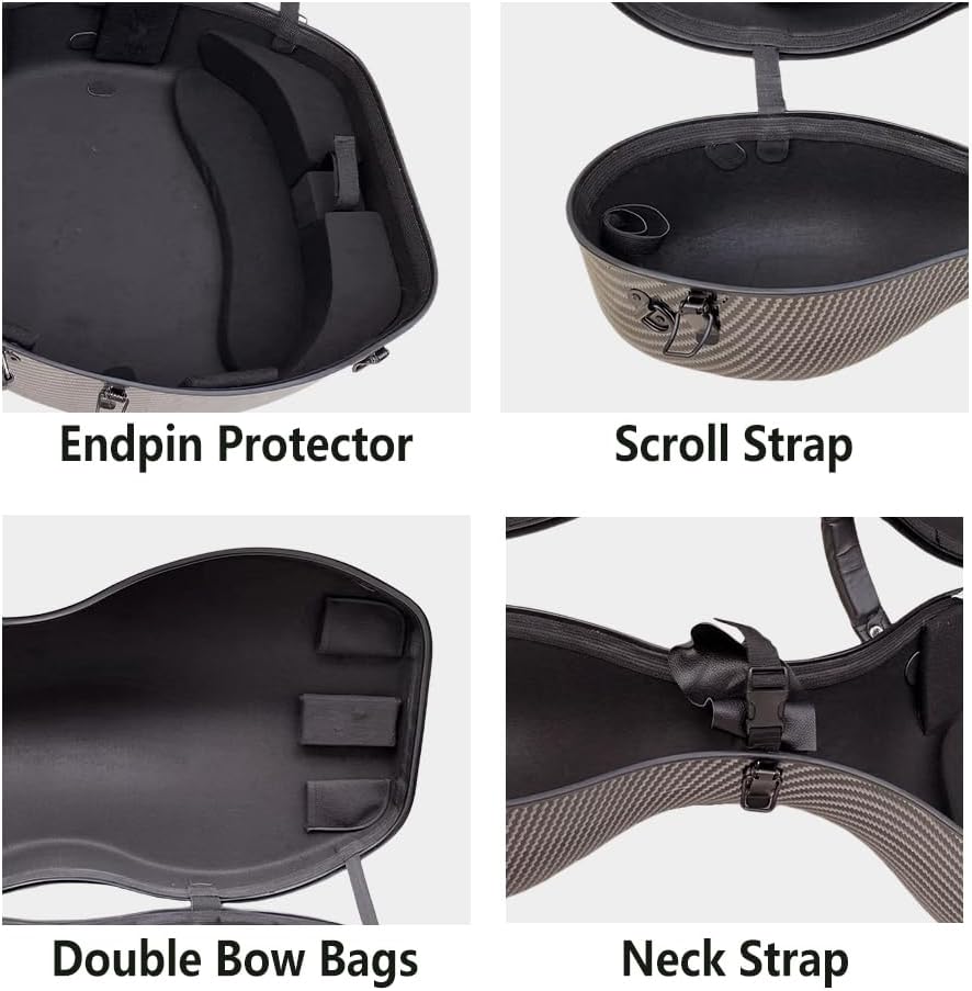 Inside, your instrument is cradled in a soft, high-density foam interior, precision-molded for a perfect 4/4 cello fit. This secure embrace prevents shifting and absorbs shocks, ensuring that your cello remains tuned and safe, making every Foyaronal cello case a moving vault for your musical passion.