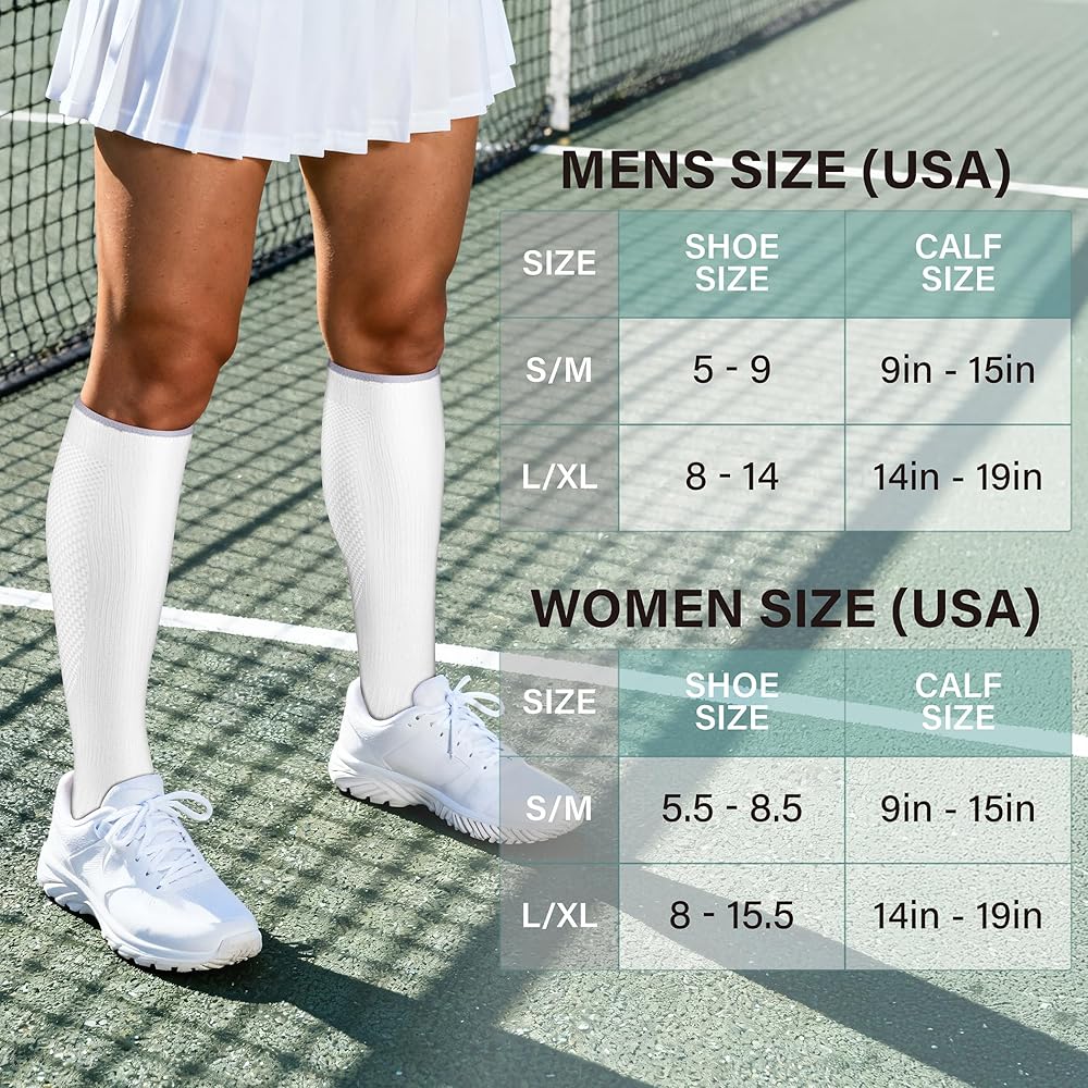 Graduated Compression Socks: Compression socks 15-20mmHg knee high provide comfortable and appropriate pressure from the ankle to the calf, effectively promoting blood circulation in the legs, caring for your leg health