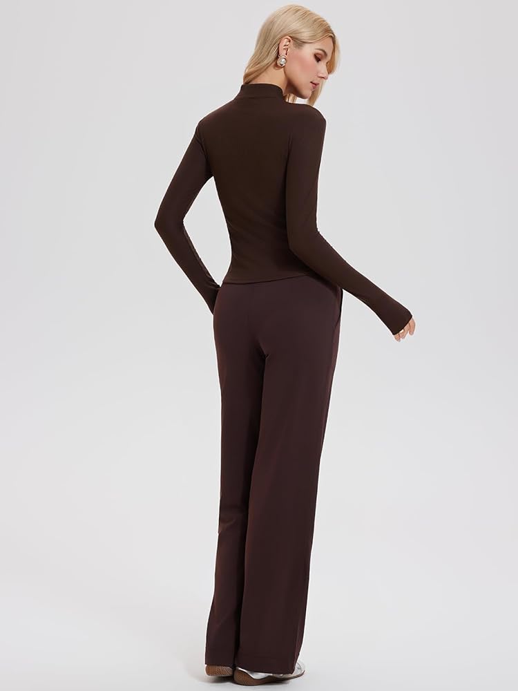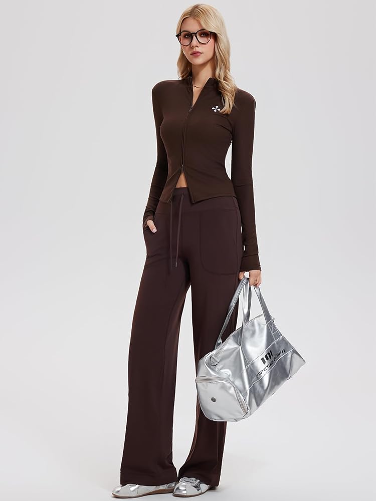 Two-Way Zipper Crop Top: This women's 2 piece outfit includes a slim sweatshirt with a stylish double front zipper. Zip it up for a chic tracksuit look or unzip from the bottom for breathable yoga outfits and casual wear. From workouts to coffee dates, this athleisure zip top blends fashion and function, making it your go-to choice for fall fashion and everyday comfort