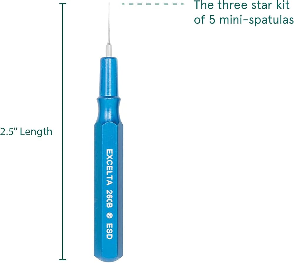 Excelta - 260D-ESD - Spatula - Mini - Straight - Three Star - SS - Aluminum Handles, 0.25" Height, 0.25" Wide, 2.5" Length