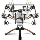 Wide Compatibility: this wall-mounted bow holder accommodates up to 2 compound bows or recurve bow, 1 crossbow, and 12 arrows; It also has dedicated space for bow and arrow accessories, offering versatile storage for various archery gear