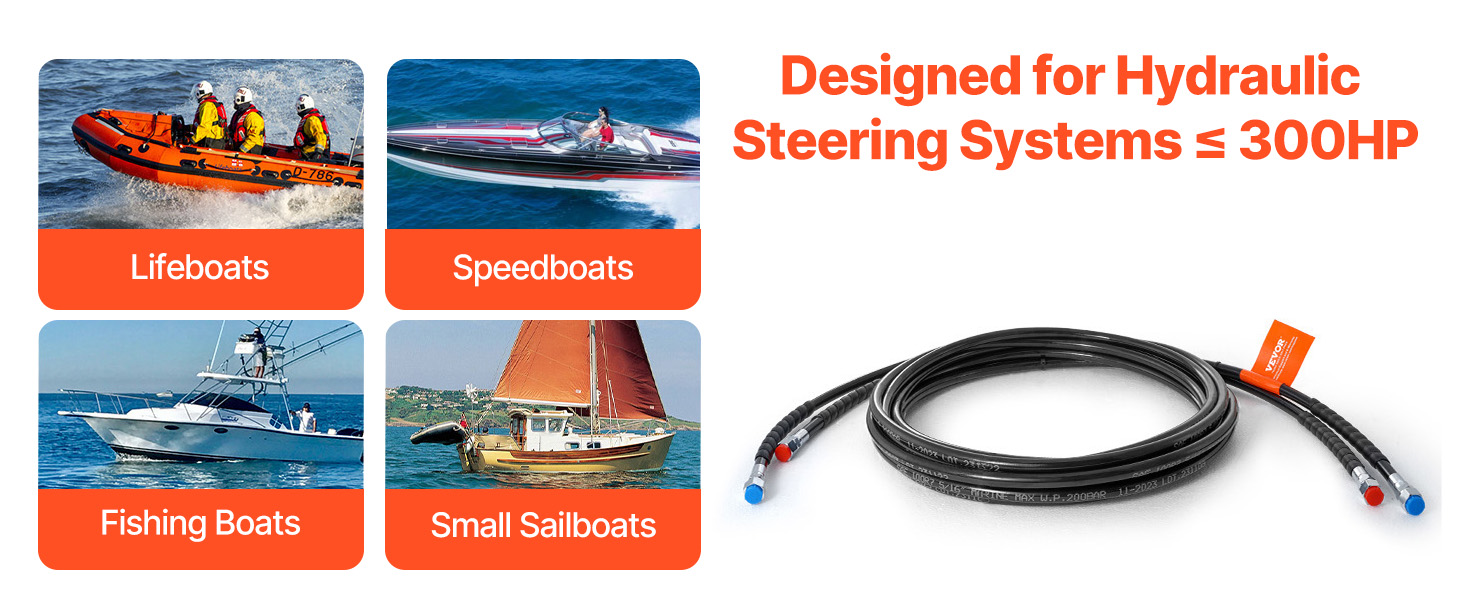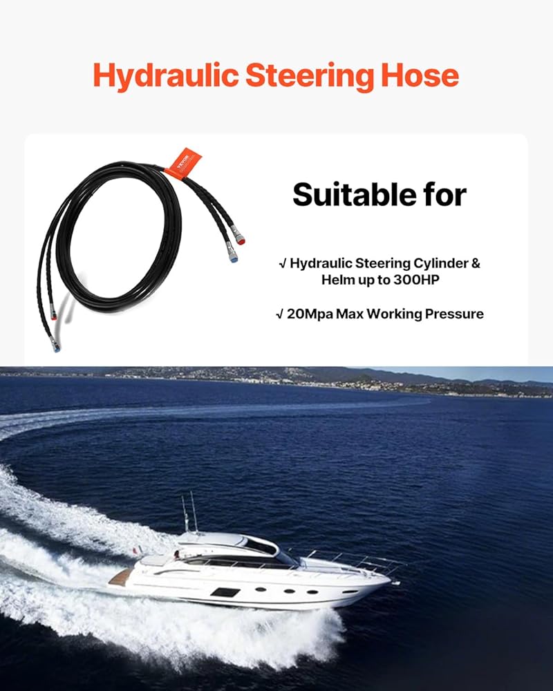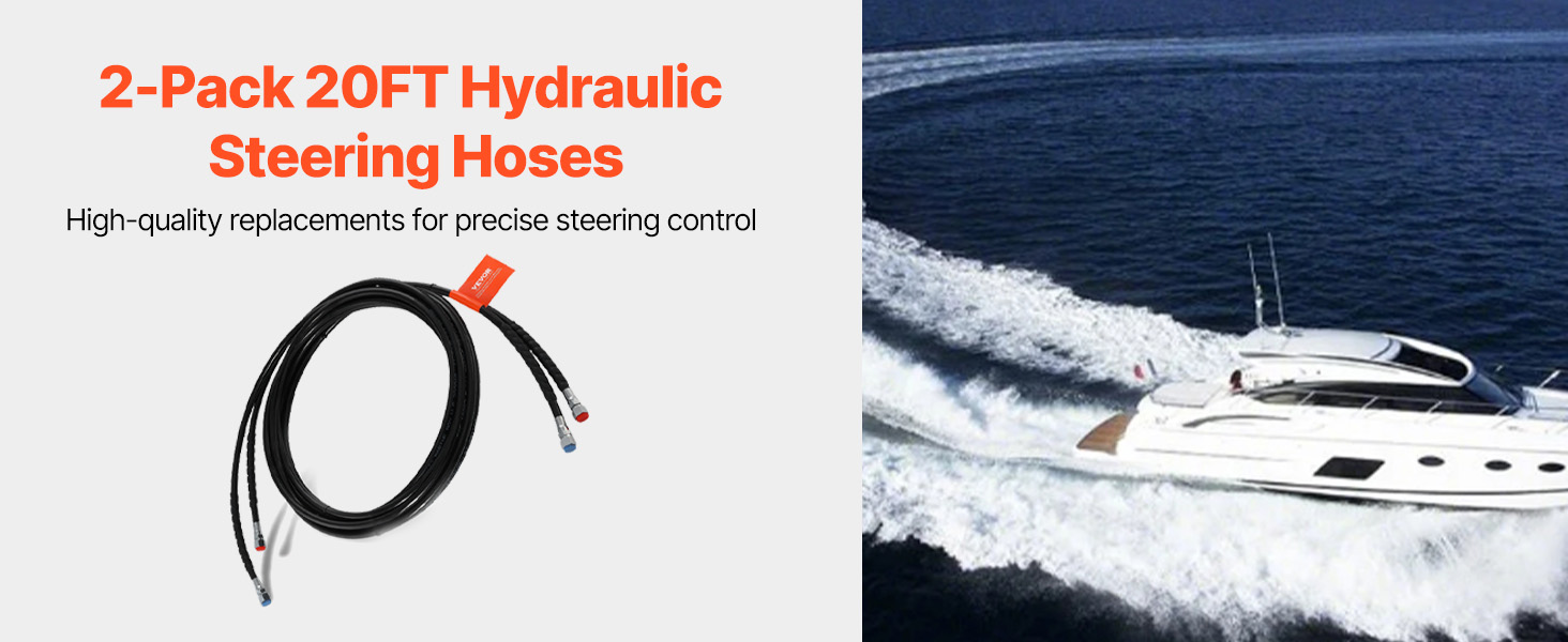 2-Pack 20ft Hoses: Each hose is 20ft/6090mm in length (excluding fittings) and comes with hose connectors for quick installation in hydraulic steering systems. The extended length makes it compatible with a wider range of boat sizes