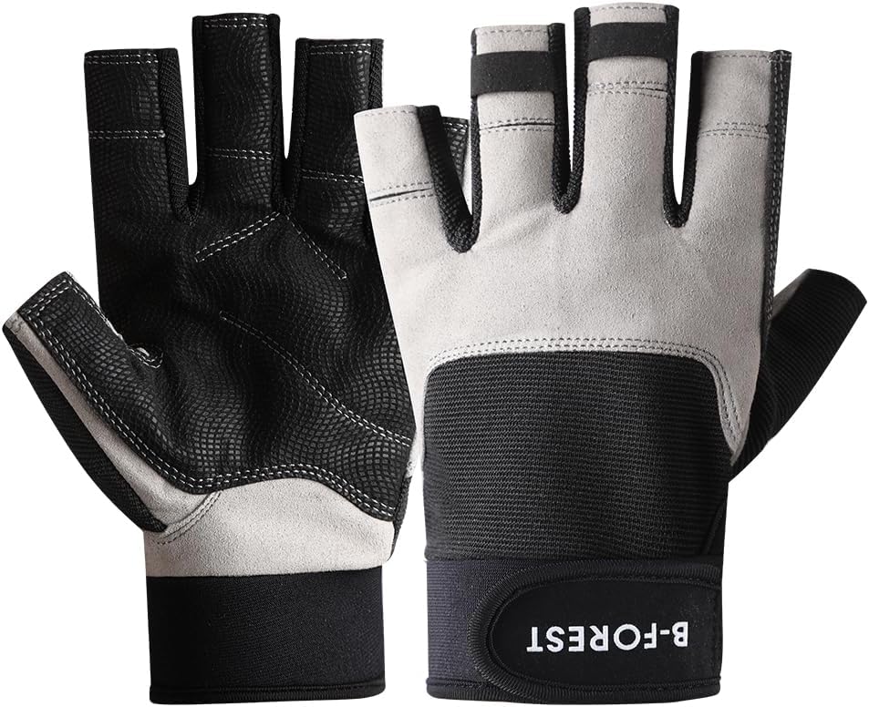 B-Forest 3/4 Length Finger Sailing Gloves for Kayaking,Rowing,Stand Up Paddle Boards, Water Skiing, Paddling and Diving,Professional Fishing Gloves for Men Women Youth