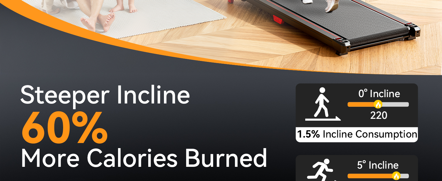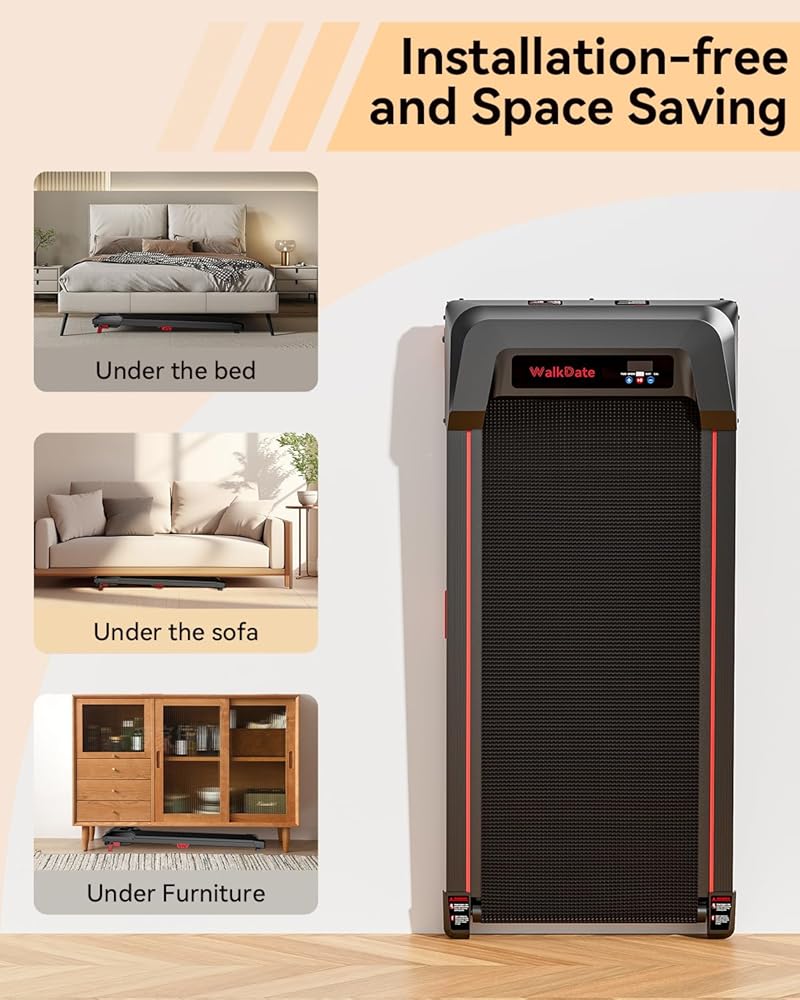 5% INCLINE, EFFICIENT FAT BURNING: WalkDate walking pad manually adjusts 0-5% incline to simulate mountaineering training, increasing the intensity of the exercise by 30%, improving the efficiency of fat burning, targeting buttocks, calves and core muscles, challenging all kinds of terrain without leaving home.
