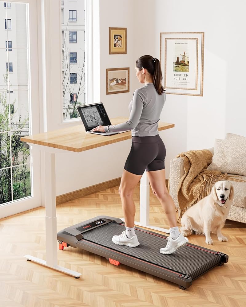 EASY TO MOVE: The built-in pulleys make moving the treadmill a breeze, and the small and compact size makes it easy to place it under a desk or in other tight spaces. In the busy work intervals, you can at any time for simple exercise, improve work efficiency at the same time, but also take into account the health of the body.