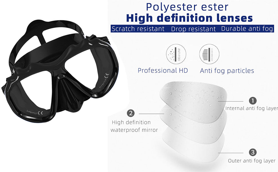 Soft silicone: The soft silicone used in contact with the face fits comfortably and effectively prevents fogging, allowing you to fully enjoy diving.