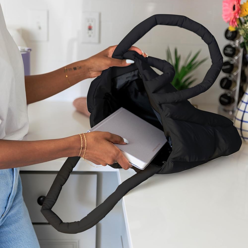 Elevate Your Style With Our Puff Tote. Crafted To Perfection, This Tote Seamlessly Combines Soft Quilted Detailing, And Subtle Team Spirit With Modern Functionality. The Neutral Color Allows You To Show Off Your Team Spirit In An Understated Way, While The Plush Puff Exterior Offers A Touch Of Comfort. Tailored For Everyday Use, The Spacious Interior Easily Accommodates Your Essentials. Stay Organized On The Move With Two Interior Pockets And A Zipper Pocket. The Versatile Handles Offer Multiple Carrying Options – Drape It Over Your Shoulder Or Carry It By Hand. The Magnet Button Closure Helps To Keep Your Belongings Secure. Whether You'Re Off To The Office Or A Weekend Adventure, The Puff Tote Is The Perfect Blend Of Fashion-Forward Design And Practicality, Making It An Ideal Companion For Any Occasion.