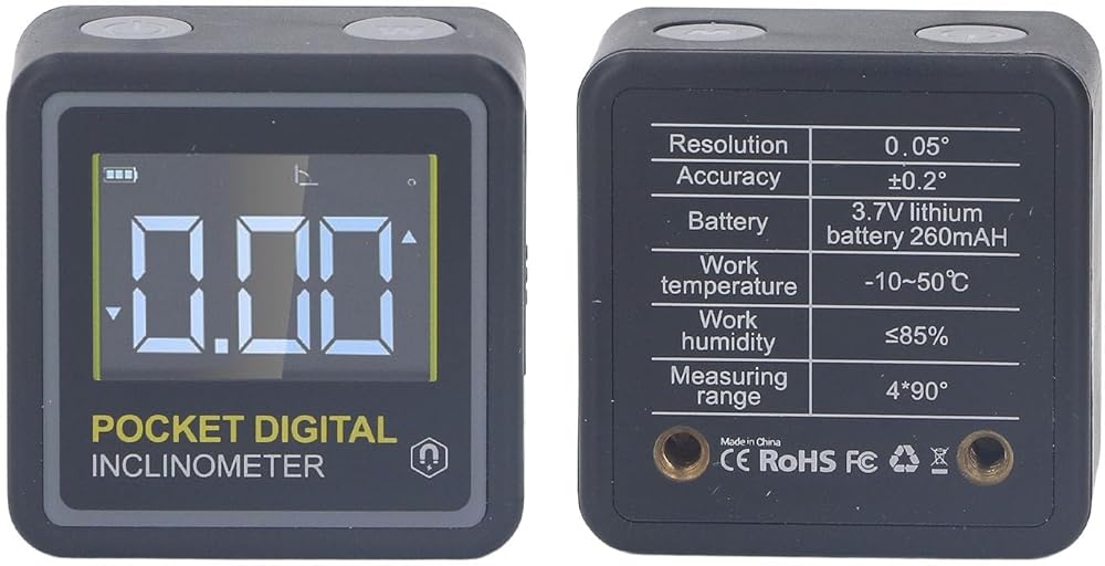 4. LIGHTWEIGHT AND PORTABLE: The pocket digital inclinometer has a portable size that make it easy to use with other measuring tools to extend the measurement range